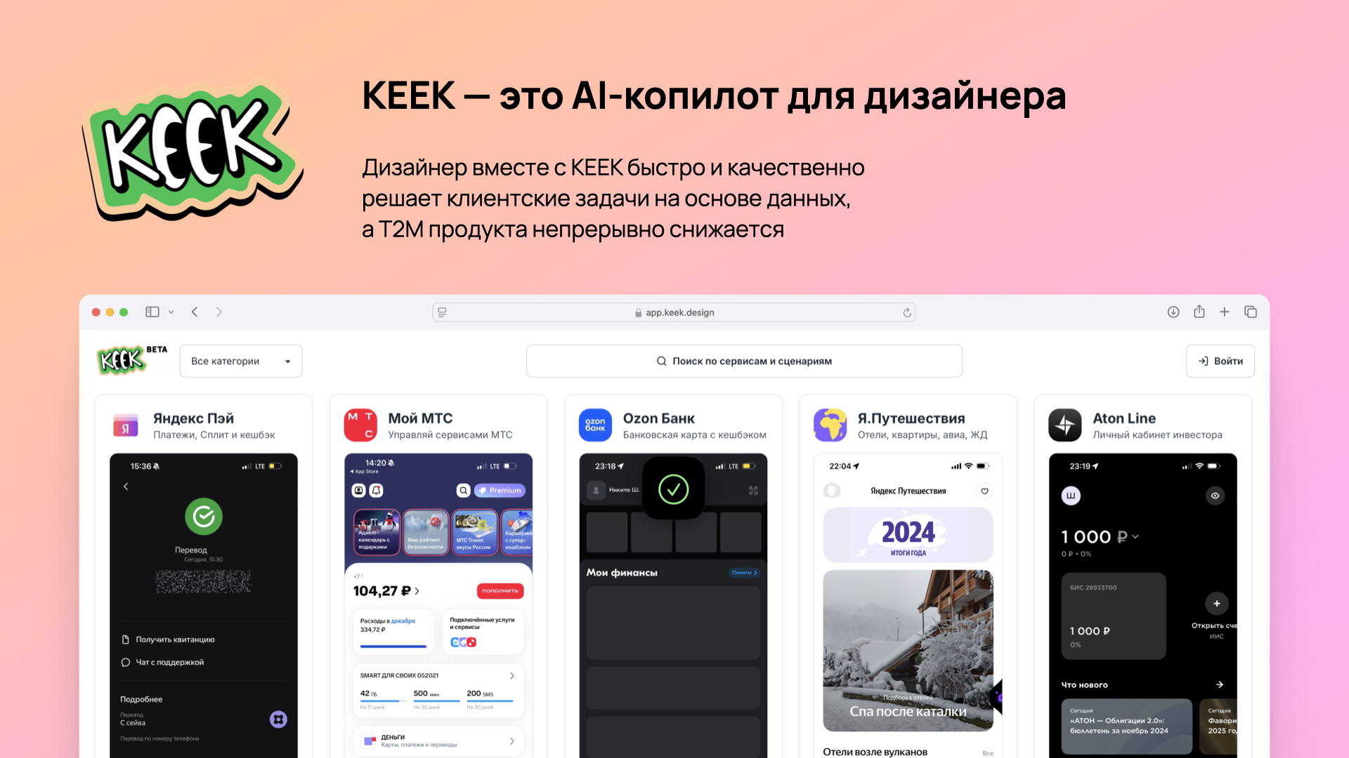 - KEEK — ко-пилот UX/UI дизайнеров, помогающий проектировать цифровые продукты за часы, а не дни.
